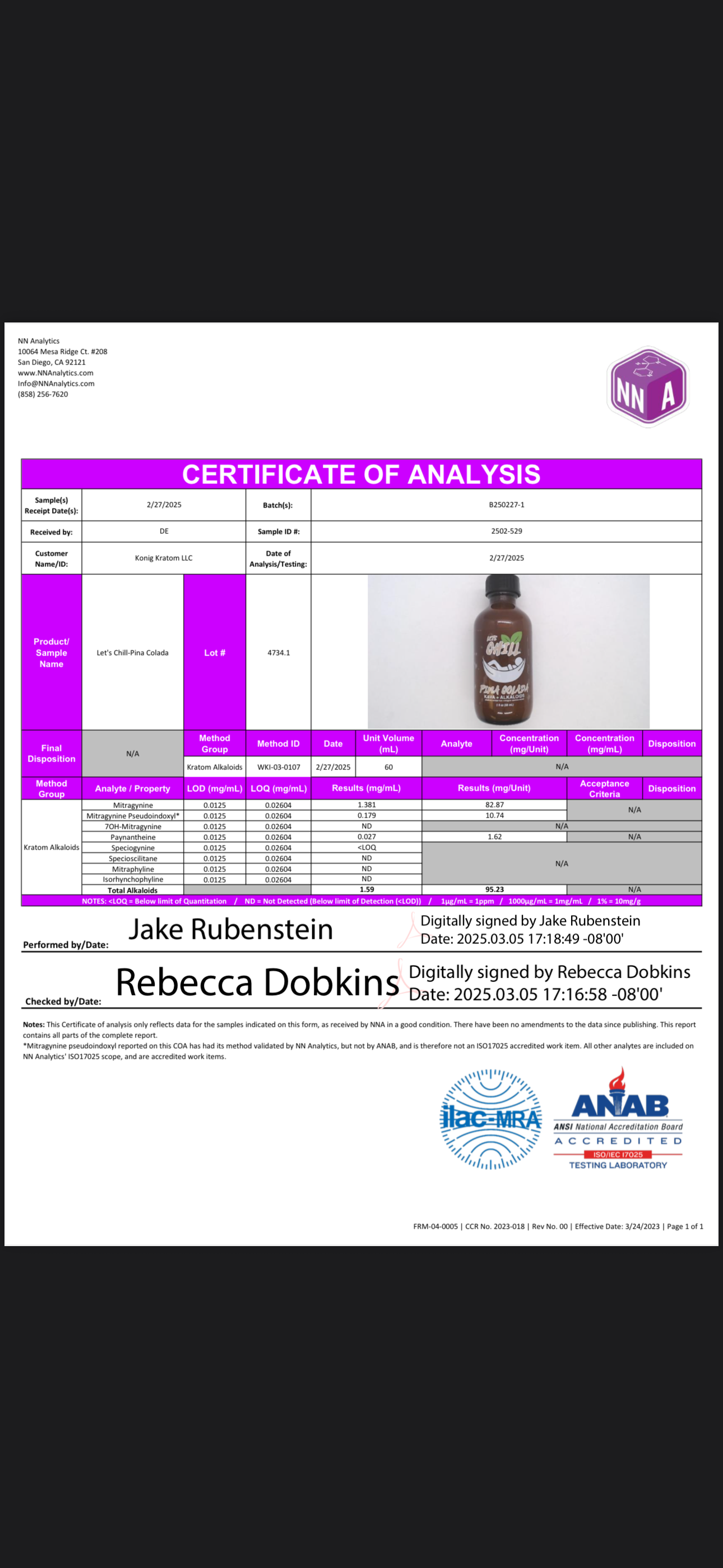 Lets Chill Pina Colada Kava + Alkaloids Shot, 60ml